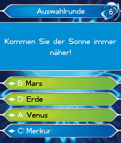 Description: The 4th edition of Who Wants To Be A Millionaire? takes the game even further with the addition of the fourth 'Switch' lifeline. The rich new graphics, a range of innovative new features and all new questions help you relive the fun of the hit TV show, as you play Fastest Finger First, use those familiar lifelines and climb the money tree to reach a virtual million.