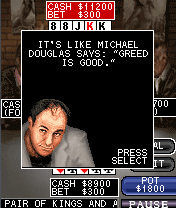 Description: You've watched them play on TV, now you can join them in the exclusive Sopranos Poker game for mobile! You'll play 5 Card Draw against Tony Soprano, Paulie Walnuts and Silvio Dante in the back room at the Bada Bing! Or, play a special round of Texas Hold 'Em with the Bing dancers in their dressing room. Watch your chips, because if you run out, you'll have to pony up one or more of your valuable possessions -- your watch, jewelry, or an article of clothing if you're playing in the dancers' dressing room. Play dirty and get an edge by peeking at your opponent's hand, but don't get caught! The Sopranos are not known for mercy.