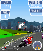 Description: MotoGP3 is the third and most revolutionary in the heralded series of MotoGP titles for mobile handsets. Taking the genre a step further, MotoGP3 not only includes all the adrenalin-packed MotoGP races, tracks, bikes and riders from previous versions, but also features all new season data and an extended set of races based around the fans of the sport who follow the event the world over. The only officially licensed Dorna MotoGP? product for wireless, featuring official riders, bikes and tracks and season data. All new Extreme mode enables racing of unofficial bikes around varied street and off road tracks. Extreme mode features another 6 tracks in addition to the 9 for the official race mode. Weather effects and three different difficulty modes. Quick race, Career Mode and time trial modes in both Extreme and MotoGP sections of the game.