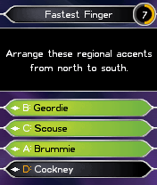 Description: This special 10th anniversary edition of Who Wants To Be A Millionaire? not only brings new questions, rich new graphics and innovative features, but also gives you a chance to win a cash prize with the bonus game! Relive the fun of the hit TV show on your mobile by playing Fastest Finger First, using those familiar lifelines and climbing the money tree to reach a virtual million!!