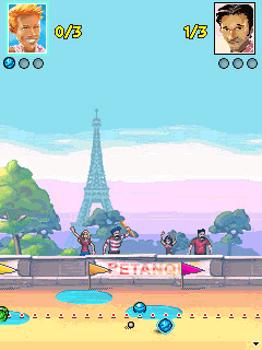 Description: The enamoured couple travels all over the world and beats local champions in Petanque. What is Petanque? It is like a golf for young people or bowling without skittles. Millions of people, from Paris to Easter island, simply adore Petanque. Let's show them a real game! Petanque is very popular game in which it is necessary to throw balls on a special platform, trying to get as close as possible to the necessary zone. In mobile version you can choose a corner and force of blow. The game takes placee in all corners of the world and your heroes play with champions of France and far Easter island. Admire game, enjoy beauty and summer which eternally reign in mobile Petanque.