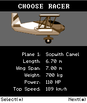 Description: Step back in time and fly your single engine bi-plane in a race against time and other pilots. Navigate through the pylons and complete the course in the minimum time. Alternatively enter the 'wager' mode, where you can study the form of each pilot in the race and place bets on the results. The odds for winning change with each race and as with any race, winning is always a mix of skill and luck.