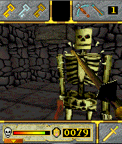 Description: The Next dimension of mobile phone game has arrived with "3D Golden Warrior". Blue Sphere Games brings you the first in it's series of 3D titles for your mobile phone. Sharpen your sword, don your armour and enter the terror filled world of the would-be Golden Warrior. The game sees the player in the role of "Aureus", who has witnessed the destruction of his homeland by the evil necromancer, Plumbeus. He must retrieve the Golden Armour and Sword to have any chance of defeating the wizard and so he must enter the Caverns of Doom to retrieve them.The caverns are rendered in full 3D with numerous objects and creatures to interact with. Combat is real time and reaction based, meaning your sword blow must land on the creature in question to do any damage. 3D Golden Warrior takes mobile Java gaming to a new height. Will you reach the centre of the maze and recover the fabled Sword and Armour of Gold, or will you die like all those before you? Play this game and find out!