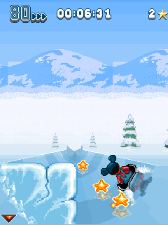 Description: Merry, reckless adventures with Mickey Mouse, Donald and Goofy. Even if they were not in the game, the game has to be awarded for nice cartoon graphics. Three winter kinds of sport are realized in the game and every one of them looks quite charming. The Snow Queen would die of envy! While controlling different characters of famous cartoons the player skis, ski- jumps and sledges in bobsleigh. By the way, the game even has a pseudo 3D view of tunnel, what makes descending in it unusually lively and realistic. The game gas 45 levels and you will need at least 3 hours to pass them all.