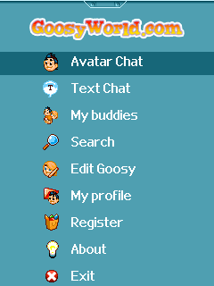 Description: Now it's time to have some fun with the new GoosyWorld Virtual CHAT game. Customized your cool Goosy avatar and chat and interact with other users in real time. Explore the different environments to meet new friends, chat public or 1-1 in the top menu. Invite buddies to your apartment and express yourself with different actions and animations. To ensure a secure chat you can block other users, chat in your own apartment, and even create your own password protected environment. When you upload your private "public" room, you pick the gang. Let the application take over your camera to instantly upload a photo. The application also includes a text chat version. Special features - Cool graphics - Real time avatar chat - Customize your avatar with different skin color and clothing - Show attitude with different actions - Invite people to your own apartment - User generated rooms - Password protected rooms - Search and see other profiles - Upload your photo - Choose between avatar or text chat.