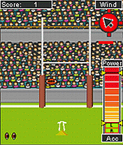 Description: Rugby Nation puts you at center stage in the world's greatest tournament. Take a kick at the goal and score points for your team. Use the fire / 5 key to choose direction. Press 5 to start the power meter. When you have reached the desired power, press 5 again. Keep your eye on the power meter and press again as close to the orange line for the greatest accuracy.Watch for the wind direction as that can have a huge impact on the direction of the ball.