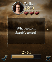Description: Listen up Twilighters! Here's your chance to show off your New Moon knowledge, and relive all of your favorite movie moments. Choose your preferred Twilight character, including Bella, Edward or Jacob, to play alone or against friends in thrilling contests. Find out who is the biggest fan! Compete for the highest score by answering hundreds of fascinating and insightful questions, some of which are easy, and others that will challenge how big a Fanpire you really are. Who does Edward tell Bella you can't trust? What does Alice give Bella for her birthday? Win trophies, refresh your New Moon knowledge, and prepare for Eclipse. Immerse yourself and your friends in the full Twilight Saga experience!