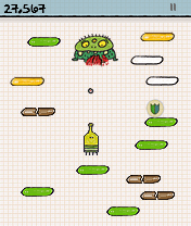 Description: Jump, jump, jump to the top, top, top with Doodle Jump, the runaway iPhone platform hit now available for your mobile phone! Guide the Doodler on a springy journey up the never-ending sheet of graph paper to see how far you can climb. Leap from platform to platform, finding your way higher and higher using brilliant contraptions like springs, propeller hats and jet packs. Avoid broken platforms, menacing black holes, UFO's and baddies. Blast them with your nose balls! Doodle Jump is one of the simplest and most addictive games that you will ever play. But don’t just take our word for it, ask any of the hundreds of thousands of fans that have already been hooked by the four-legged critter. Download Doodle Jump and start climbing the platforms, as well as the Leaderboards today!