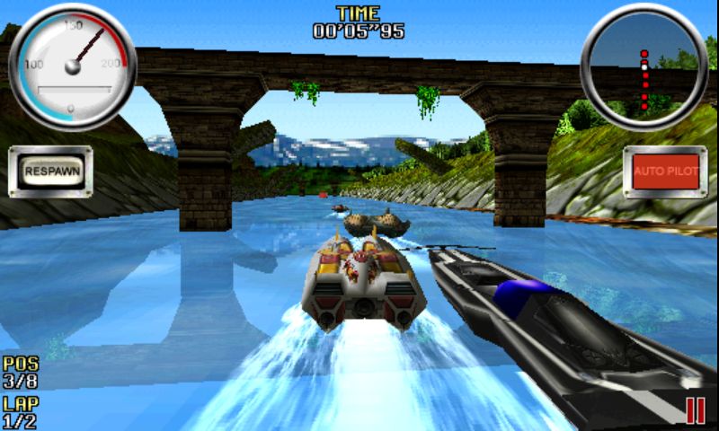 Description: Take on the most outrageous powerboats in the world! Wave Blazer will take you through beautiful scenery, city environments and even fetid sewers, but watch out - the slightest mistake will leave you wrapped like a hawser around the nearest wharf pile.supplied by Harsha