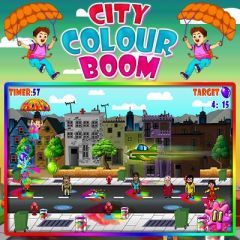 Description: Play the funny and interesting colorful game City Color Boom without wasting water. In this festival of colors play as a naughty boy, who is hanging on parachute and throwing water balloons at street people. Feel the real adventure and experience the extreme sport paragliding. In this lovely game your mission is to drop balloons, filled with colorful water, over the people walking on the street of the city. You have limited time and fixed target in each level to accomplish your task. You also have to beware of hurdles like missiles and aircrafts. This game is for real fun lovers who love to put the people in trouble and make their joke on Holi.