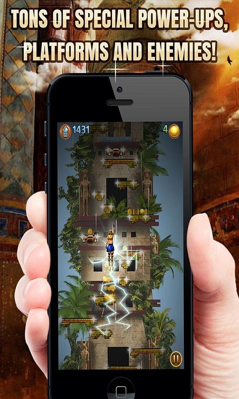 Description: Ancient Jet Packs, fabulous Power-Ups & Endless Fun - guaranteed! Welcome to wonderful Egypt and the land of Pharaohs. Unfortunately your Jet Pack has run out of energy and is now coasting on fumes. It might have enough power to push you to the next level but this is now in your lucky hands! Watch out for over 10 different types of deadly platforms with scary trap doors, deadly spikes, huge bombs and so much more. Luckily for you there are some really awesome power-ups to help you along the way...supplied by Harsha