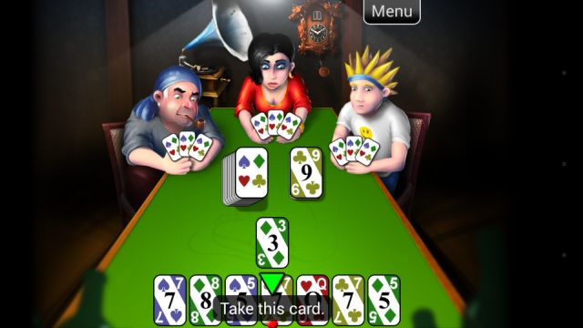 Description: Mau Mau is a classic card game on your mobile phone screen for two to four players. The game is played against three computer opponents, so that a total of four players can participate in the game. The player may choose in the menu a different number of players (two to four) and select which players should be present. The player's cards are located at the bottom of the screen. The game is turn-based, each time a player moves, (s)he either plays card from hands or takes a card from the base pile. The goal of the game is to get rid of all the cards from the hand. Those three guys don't cheat. They get same random cards as you, and don't see at each other's cards or under the pile. They use their own logic to play, same like you can.supplied by Harsha