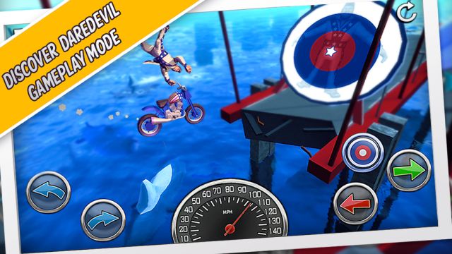Description: Only the most daring drivers (or the craziest) are able to pull of these amazing stunts. They need to be one tough cookie in order to get behind the while of a motorcycle and launch themselves off a ramp without any safety net. In DareDevil Rider you can attempt these awesome stunts from your mobile device... without risking your life or a lot of serious injuries. In DareDevil Rider YOU are the ultimate acrobatic stuntman! Test your skills and overcome intense obstacles to pull off the stunts. You’ll be expected to jump through rings of fire and over obstacles like trucks, cars, airplanes, helicopters... and few other surprising objects. Your goal is to land on the braking ramp that marks the end of the level. Without precision and accuracy you won’t last very long... you should optimize your jump power and don’t waste it impulsively. If you fall off the ramp you won´t get hurt, but your stuntman won´t be very happy about it. Luckily you’re able to try as many times as you want!supplied by Harsha