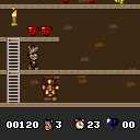 Description: Scylla the witch is back again, and this time she has in her possession the formula for supreme evil. She needs the rare black diamonds for her formula - and they are only to be found on Jungle Island where the Kikurians live. With Don Croco's help, she has captured all the wretched Kikurians and forced them to toil in the mines, day and night. Hugo must free all the captured Kikurians and stop the production of Scylla's evil potion.