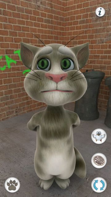 Description: Tom is your pet cat, that responds to your touch and repeats everything you say with a funny voice. You can pet him, poke him or grab his tail. Record your own videos of Tom, save them to your library, share them on YouTube & Facebook or send them by email.supplied by Harsha