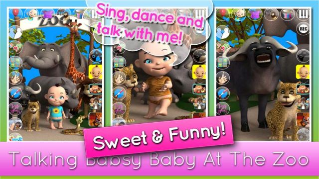 Description: Talk and play with Babsy during her visit at the zoo! She and her animal friends will answer with their funny voices and respond to what you say or your touch. The app contains many cool games and a lot of extra content! Babsy has been brought to the zoo for the first time. Once there, she will meet with a lot of different wild animals. Check out all the exotic animals and the different sounds they make, like the powerful trumpeting of the elephant, the hiss of the leopard, the whistle of the snake etc. Spend some time with this cute little baby and her activities: Dance with the animals, dress her up in different baby outfits, blast the balloons, practice with drums etc.supplied by Harsha