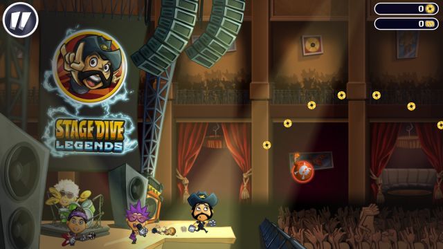 Description: Whether it’s New York, London, Berlin or Paris - your tour will take you to cities all over the globe! Join the endless fun in this epic rock star saga and experience the most legendary moment at every rock show: the stage dive! Smash your guitar, speed up and jump into the cheering crowd! Rush through the concert hall and get carried away by your freaked-out fans. Perform crazy stunts, collect golden coins and use amazing power-ups to entertain the party crowd! Avoid flying obstacles like bombs, bananas and the occasional burger. ‘Stage Dive Legends’ is a super-fast runner game with lots of excitement and fun. Play to hard-rocking songs, run backstage, customize your favorite rock star and find the best way to top the records! Explore a vast amount of missions in a race through cities all over the globe. Prove your skills and become a true stage dive legend! Let's rock!supplied by Harsha