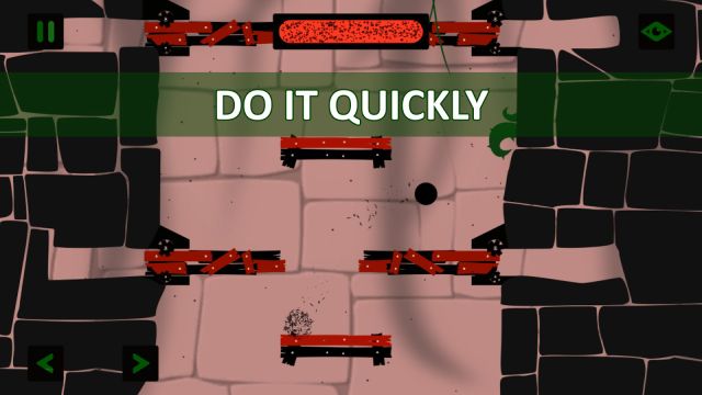 Description: Adventures of a black ball in the dark dungeonAdventures of a black ball in the dark dungeon. Use swipe to jump and arrow buttons to make your position correct. Your primary goal is to reach the black hole in the end of each level. Move fast your time is finite, keep away from red things, solve puzzles fast and you will be victorious.supplied by Harsha