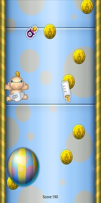 Description: This baby is having a great dream, bounce on huge ball collecting coins. Help the baby keep dreaming preventing it from falling. Collect bottles and pacifiers that will help you on your task.supplied by Harsha
