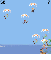 Description: Use your 4 and 6 number keys to row your boat back and forth across the screen and save the skydivers as they fall from the sky. Miss one and they become lunch for the man-eating sharks in the water below. You get points for each parachuter that you rescue. There are three difficulty levels and nine game levels provided, as well as game instructions if you need them.