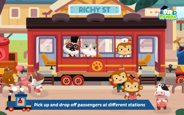 Description: Dr. Panda Train has pulled into the station! Put on your conductor hat and take passengers on a journey full of fun and discovery! All aboard Dr. Panda Train! Show your passengers to their seats and load your cargo to begin your journey. As you steam away from the station, help Dr. Panda drive the train, or say hello to your friends in the passenger car to stamp their tickets and serve them snacks! It's full steam ahead! Have fun driving the train and exploring the world. Tour the jungle or steam through the desert--there's so much to see! As you continue on your trip, be sure to look out for all sorts of surprises! What will you discover? In Dr. Panda Train there's plenty for kids to discover and learn, all by themselves, or together with you! Work together driving the train and loading cargo, or create stories when bringing passengers from one station to another. It's all up to you!supplied by Harsha