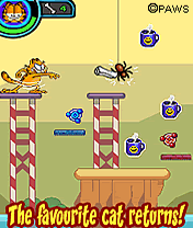 Description: Play as Garfield in search of a missing Odie. Jump onto static, moving and invisible platforms to travel across various challenging levels. Trigger colored switches to activate like-colored platforms. Time your moves well, and use logic to solve the platforming puzzles. Watch out for Songbirds, Dogs, Spooks and Postmen who will get in the way of your quest. Jump onto them or throw newspaper rolls to knock them out of the level! Pick up power-ups like Lasagna, Coffee and Doughnuts for bonuses.